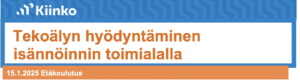 Miten tekoälyä voi hyödyntää asiakaspalvelu - ja asiantuntijatehtävissä isännöinnin toimialalla Ota tekoäly avuksesi! Webinaarissa tutustutaan siihen, miten tekoälyä voi hyödyntää asiakaspalvelu - ja asiantuntijatehtävissä, erityisesti isännöintialalla. Webinaarin kesto on 1,5 tuntia klo 9-10.30. Koulutuksessa käsitellään mm. seuraavia teemoja: Tekoälystä työarjen tukiäly - Miten hyödyntää tekoälysovelluksia työssä? Missä tekoälyä kannattaa käyttää ja missä ei? Katsaus sovellusviidakkoon...